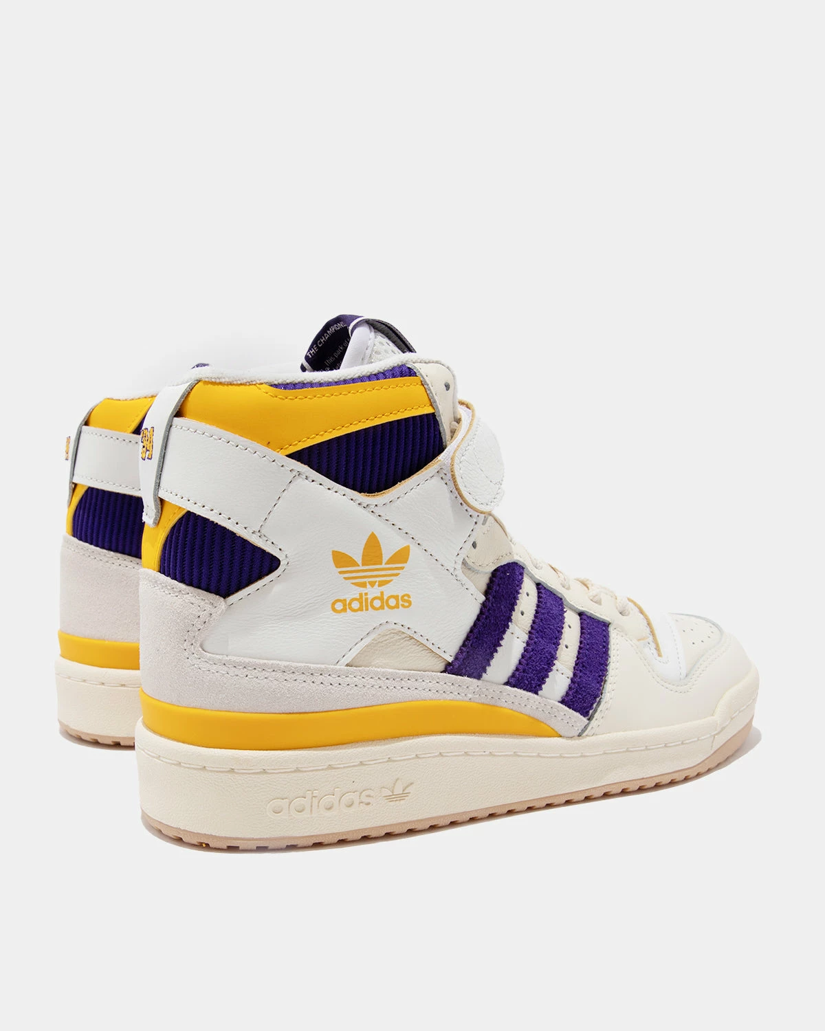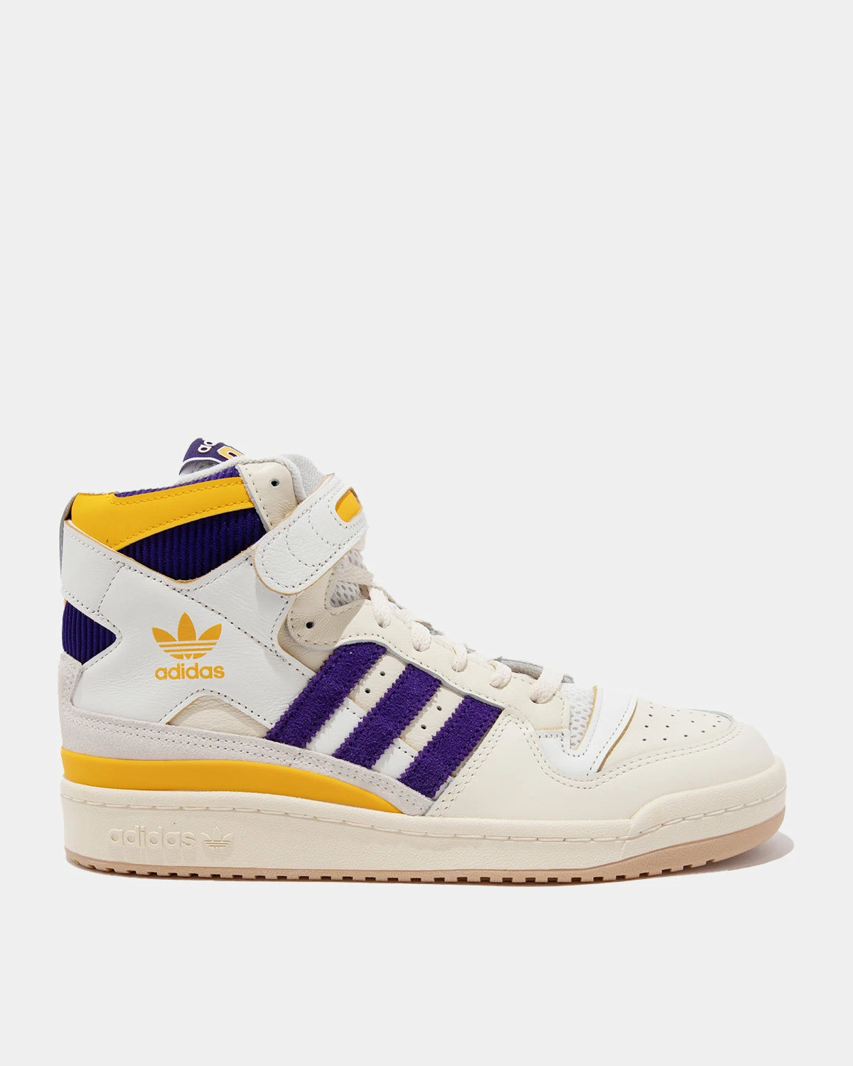 The Adidas Forum 84 High spotlights a blend of textile, synthetic leather, and suede within its upper. 25% of the components used to make this upper are made with a minimum of 50% recycled content. The cotton laces secure the silhouette, while the textile lining adds further comfort. Perforated detailing resides at the toe box, while the woven label at the tongue spotlights the design even more. The rubber outsole underneath protects the rest of the design.