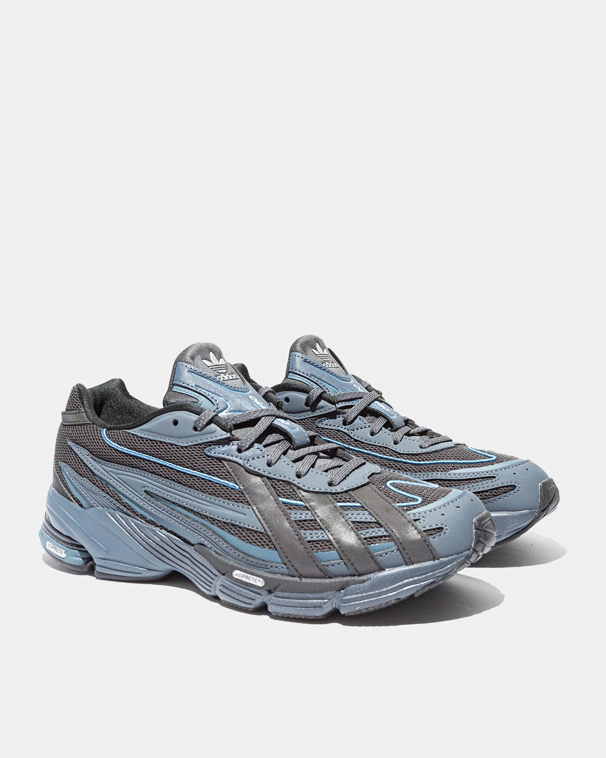 The Orketro Shoes look to lightweight ’90s running shoes and brutalism for design inspiration. This confluence of references combines to push the classic running silhouette in a new, futuristic direction. The asymmetrical design is crafted from a mix of mesh and suede with metallic leather details, and rests on a premium rubber outsole. The shoes are signed off with Trefoil and Orketro branding on the tongue.