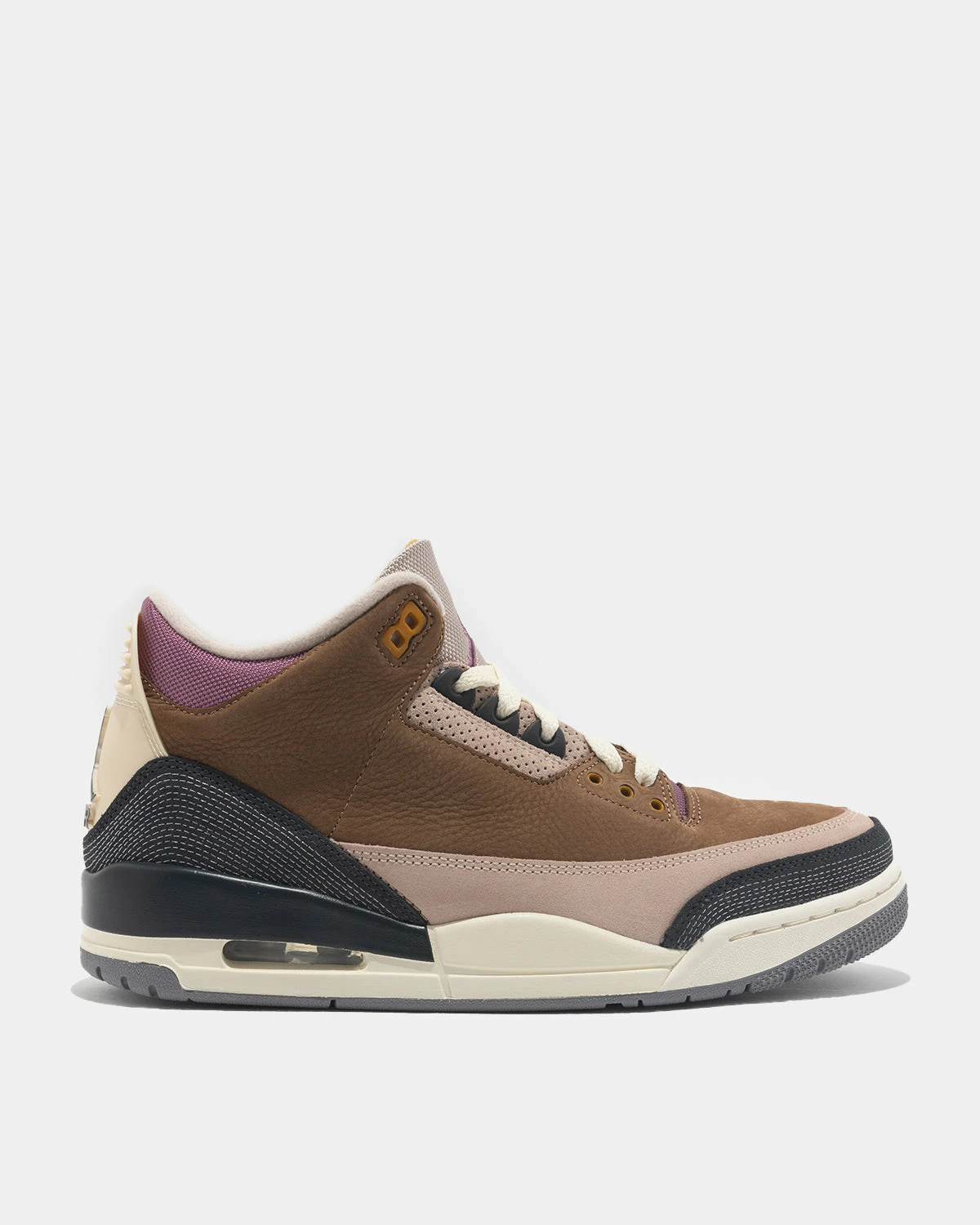 This offering of the Air Jordan 3 comes constructed with a premium water-resistant, winterized suede material. Mesh collars and tongues with Sashiko stitch overlays atop a signature AJ3 rubber outsole completes the design.