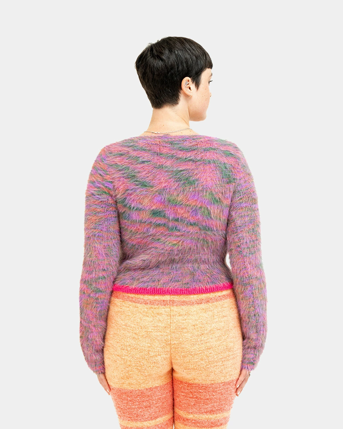 Knitted Construction, Ribbed-Knit Edge, Abstract Pattern Print, Contrasting Trim, Silver-Tone Hardware, V-Neck, Hook Fastening, Front Button Fastening, Long Sleeves, Cropped. Composition Nylon 100% Washing Instructions Dry Clean Only