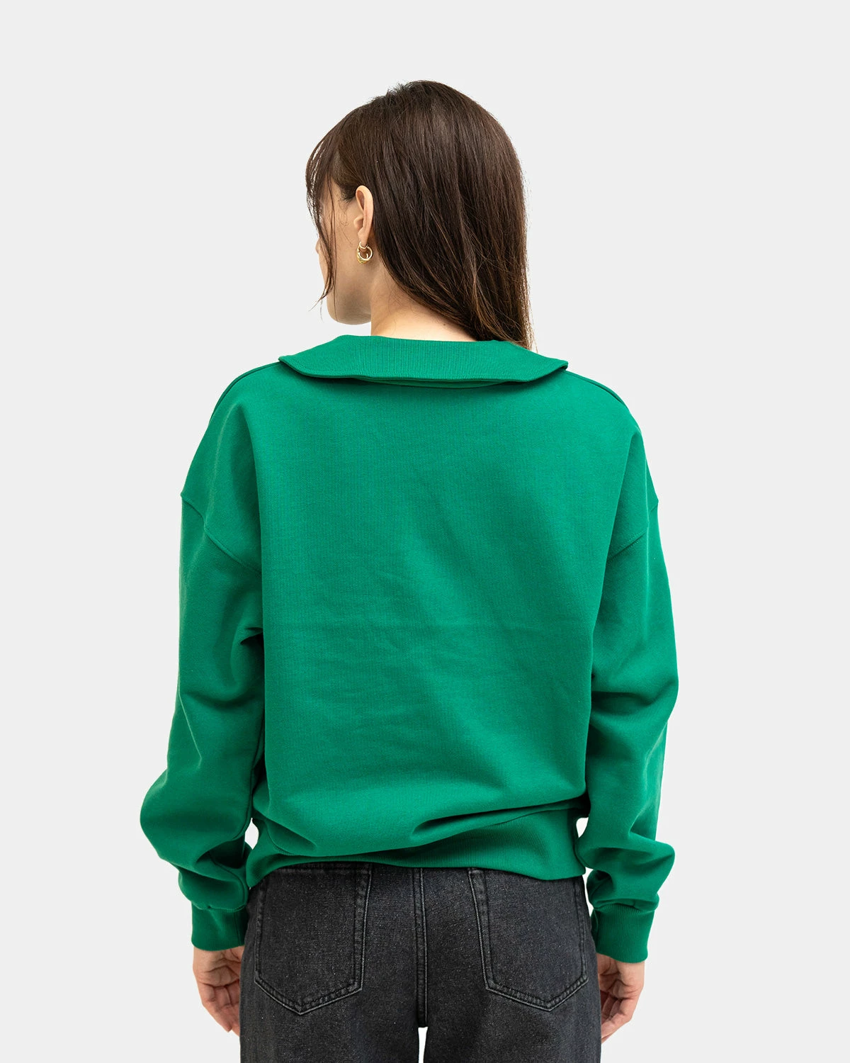 A well-designed top with a collar of the same fabric docked on a crew neck sweatshirt. The drop-shoulder silhouette and relaxed size make it perfect for casual wear.