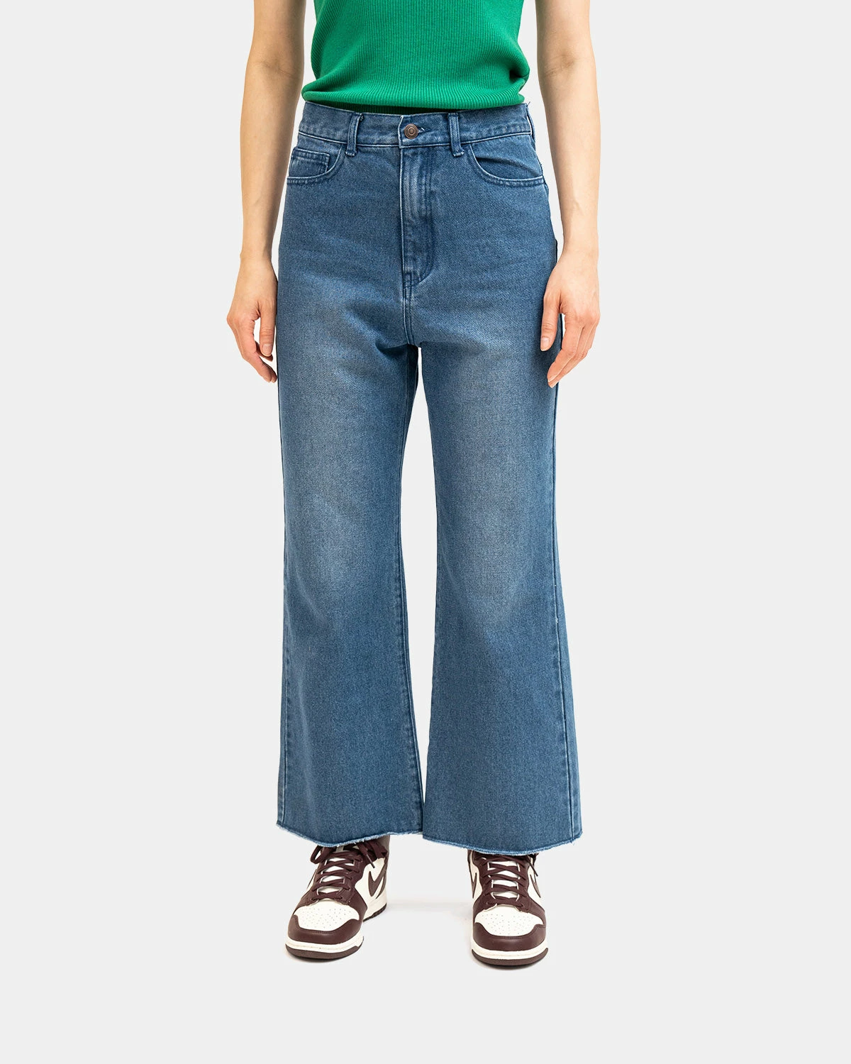 Denim pants using the same denim material as the MA-1 denim jacket. The point is the straight silhouette that is not too thick. The uncut hem gives it a casual look.