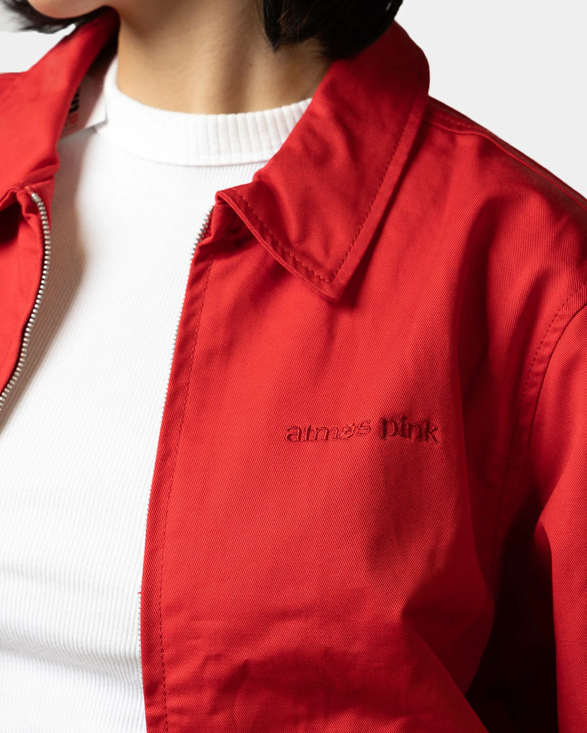 A convertible collar jacket that is very active in a wide range of scenes. Uses twill material for a casual look. The atmos pink original logo is embroidered on the left chest. Relaxed unisex design. This item has a simple design that goes well with any bottoms, so it can be coordinated with a wide range of outfits.