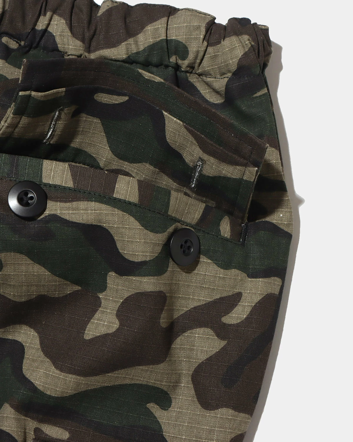 Easy cargo pants from tmos original parel 2022 Holiday Collection. 6-pocket cargo pants with elastic waist using 60/40 cross ripstop fabric, and the hem can be adjusted with a built-in drawcord.