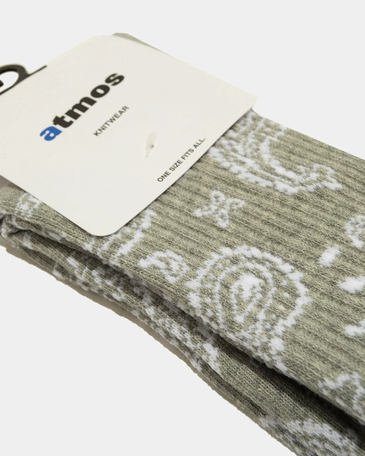 Grey socks are newly added to the atmos original socks with the popular paisley pattern. It is moderately thick and stretchy, and also has wear resistance. One article that gives an accent to simple feet.