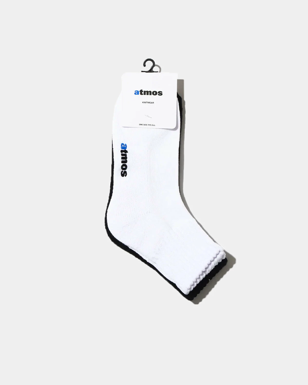 A set of 2 pairs of atmos original basic quarter-length socks. The atmos shop logo is printed on the arch.