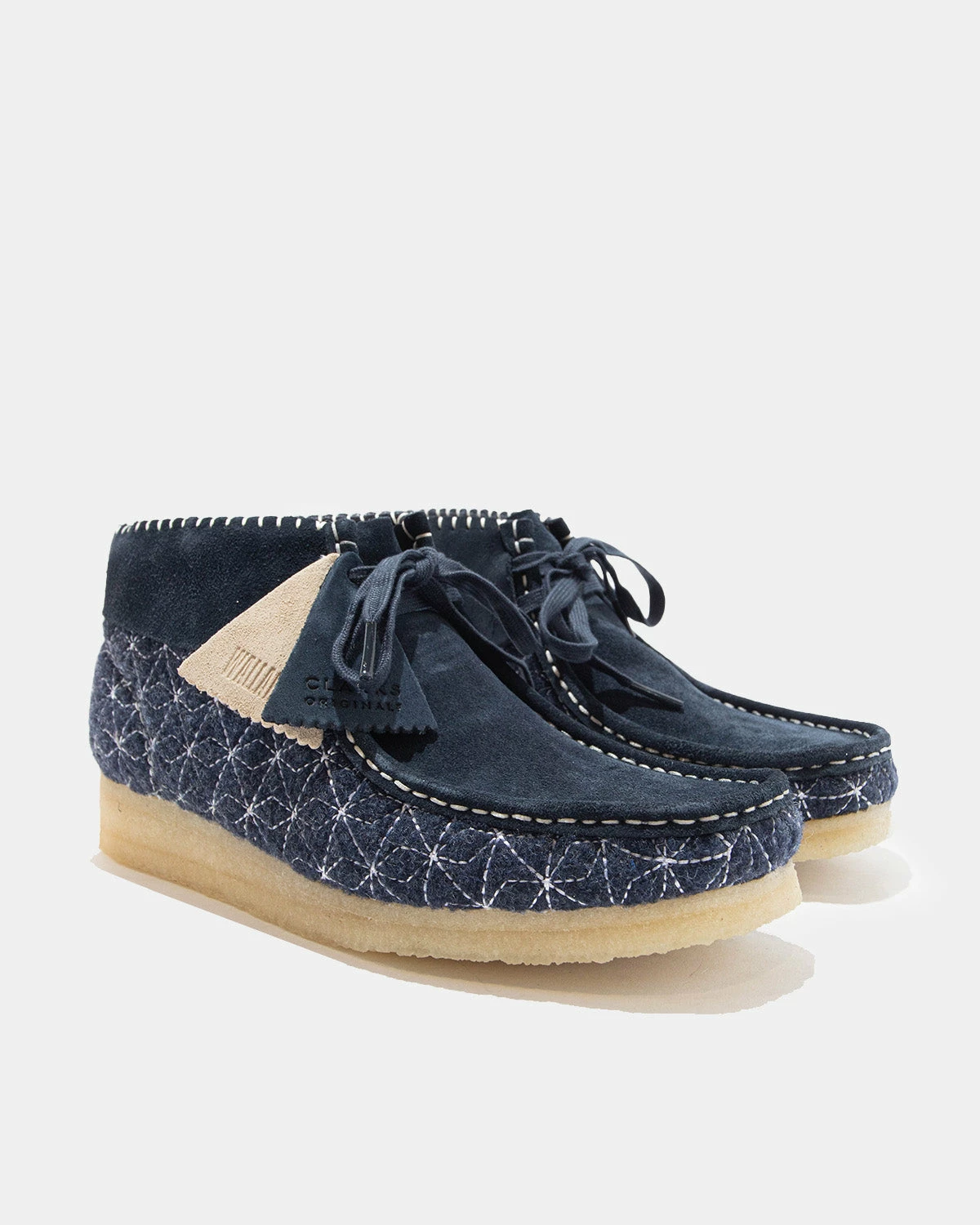 Introducing your new season Wallabee Boot. Intricate Japanese Sashiko stitching on deep indigo suede creates a beautiful, homespun addition to our Wallabee family. The triangular patchwork design harks back to the ‘Boro’ method of reworking materials, complemented by a minimal, smooth suede vamp – and a loose, whipstitched collar.