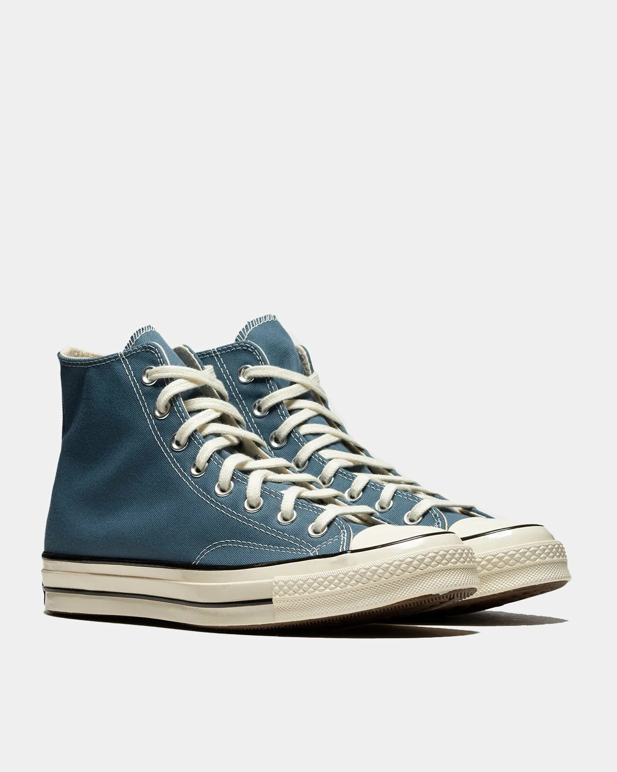 A true-blue hue that’s ready for every aesthetic. The Chuck 70 is built off of the original 1970s design, with premium materials, extraordinary craftsmanship, and enhanced cushioning to keep you feeling good. The poly-canvas upper is joined by classic Chuck 70 details, like premium cotton laces, winged tongue stitching for reinforcement, and varnished egret foxing with vintage license plate.