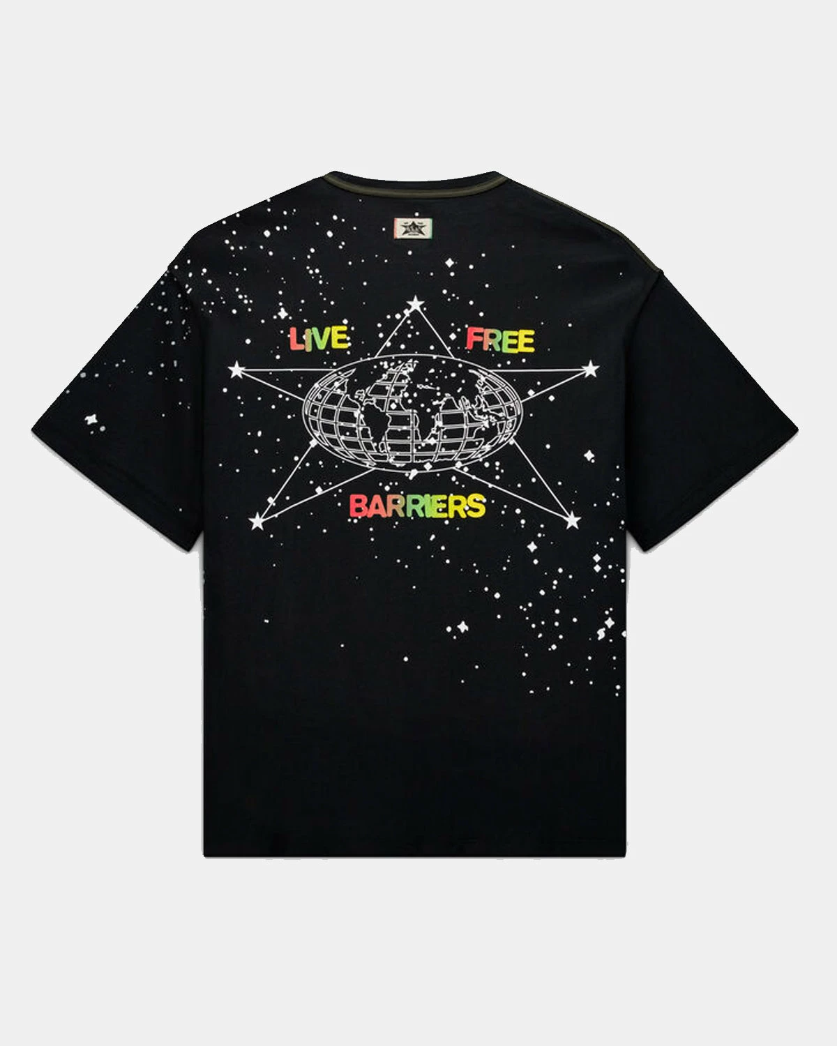 Barriers doesn’t make passive fashion. It’s active and engaged—teaching, learning and making a statement. Barriers elevates heroes to amplify messages of anti-racism and progress. On this court ready t-shirt, the NYC-based brand draws inspiration from The North Star, a 19th-century anti-slavery newspaper led by influential abolitionists.