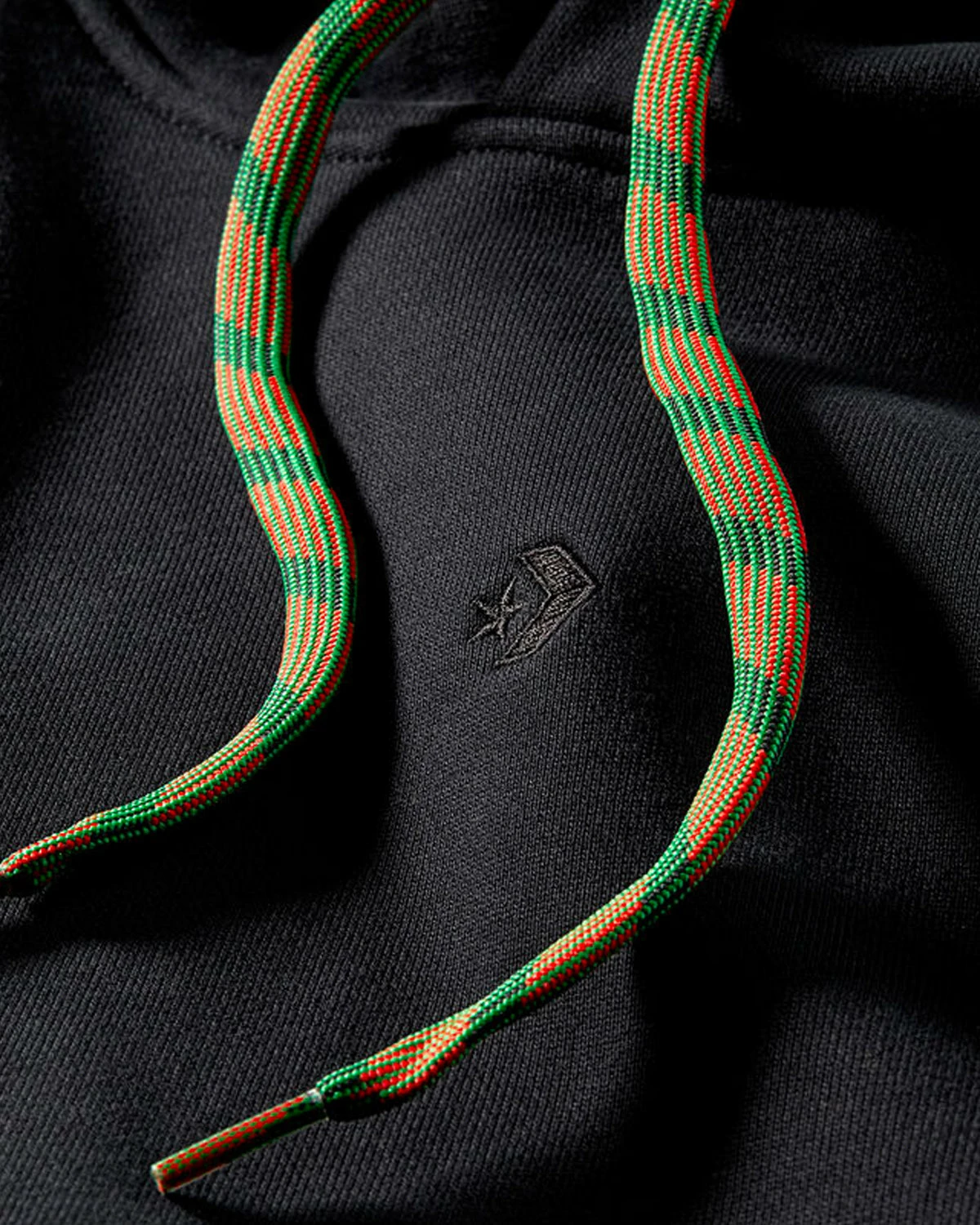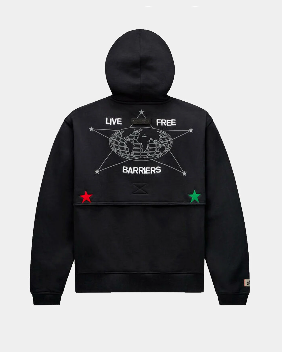 Barriers doesn’t make passive fashion. It’s active and engaged—teaching, learning and making a statement. Barriers elevates heroes to amplify messages of anti-racism and progress. On this court ready hoodie, the NYC-based brand draws inspiration from The North Star, a 19th-century anti-slavery newspaper led by influential abolitionists.