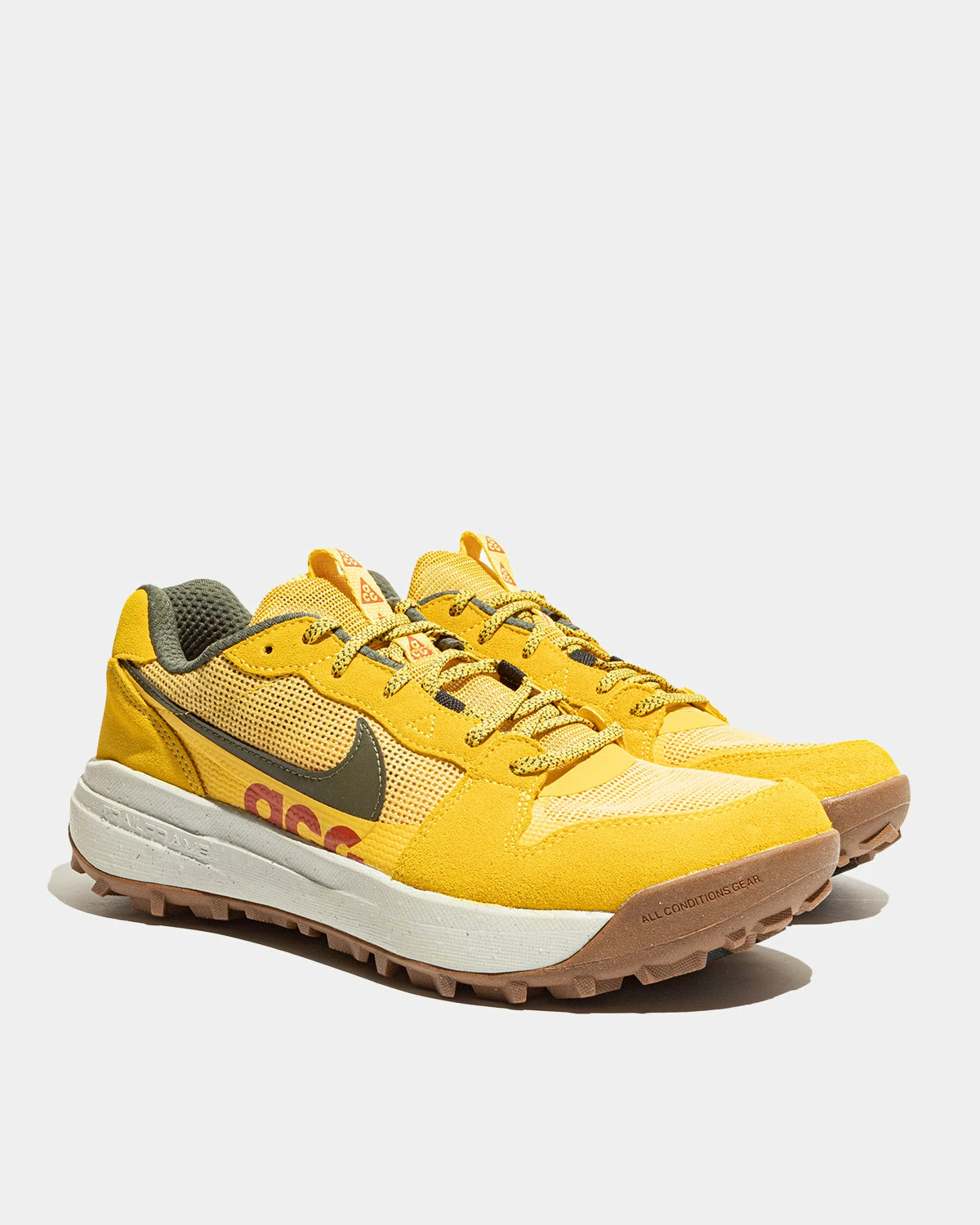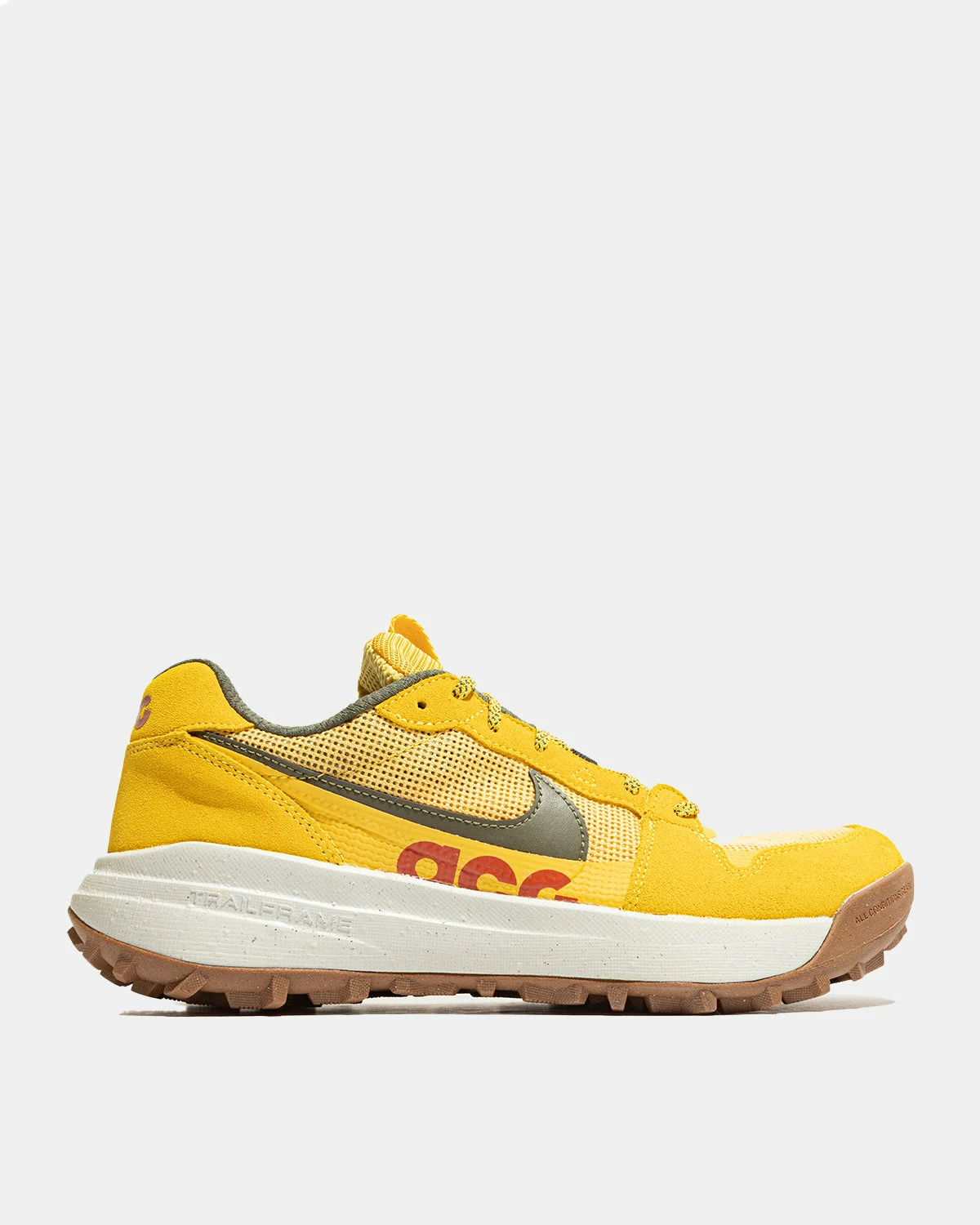 Rivers, rocks, and streets, oh my! The ACG Lowcate is ready to take you between city living and adventure. Designed and tested in the rugged Pacific Northwest, the mixed-material upper pairs durability with an easy-going outdoors aesthetic. Its rubber outsole and heavy-duty, tuned lug pattern grip slick and rocky terrain so you can go up, down, through and around. Its Trailframe underfoot (a shank above the midsole) provides extra support, especially when carrying a backpack full of gear and goodies. So, where to next?