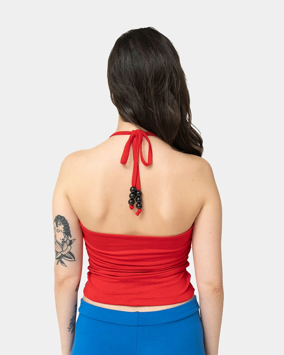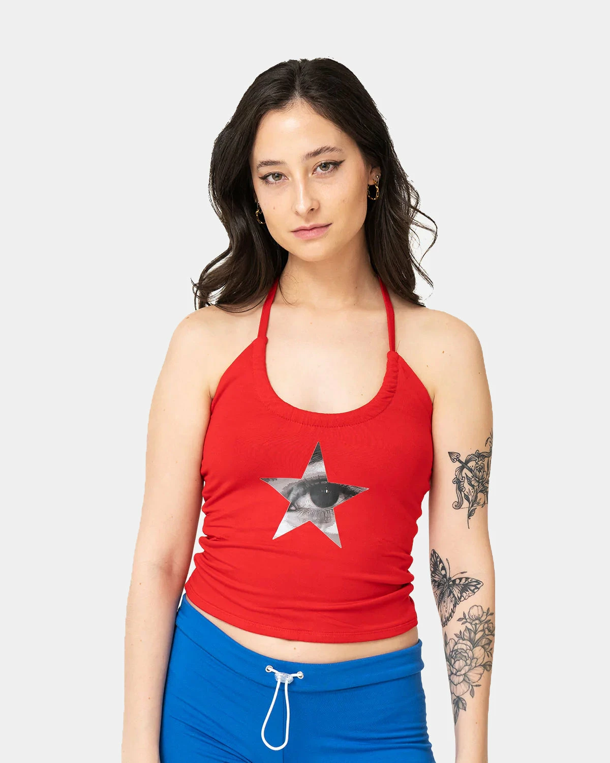 Featuring the Omighty Starry Eye Print. This is a keyhole fitted top featuring adjustable straps