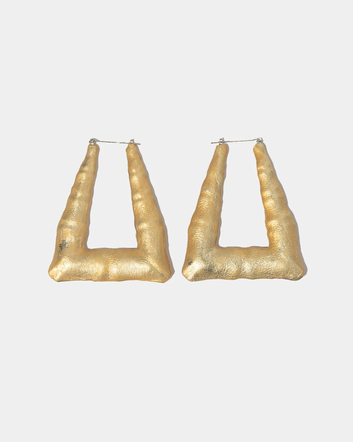 Classic triangle bamboo earrings. Made of metallic gold Italian leather. Handmade