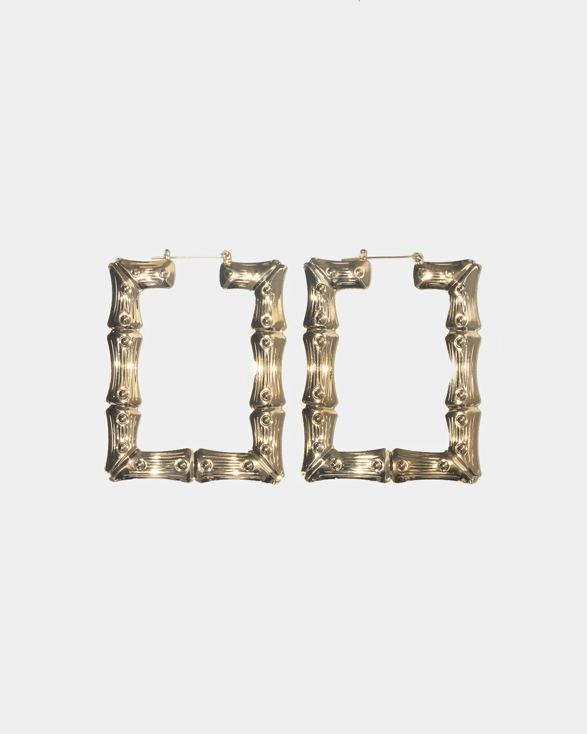 Doorknocker earrings wrapped in metallic gold Italian leather.
