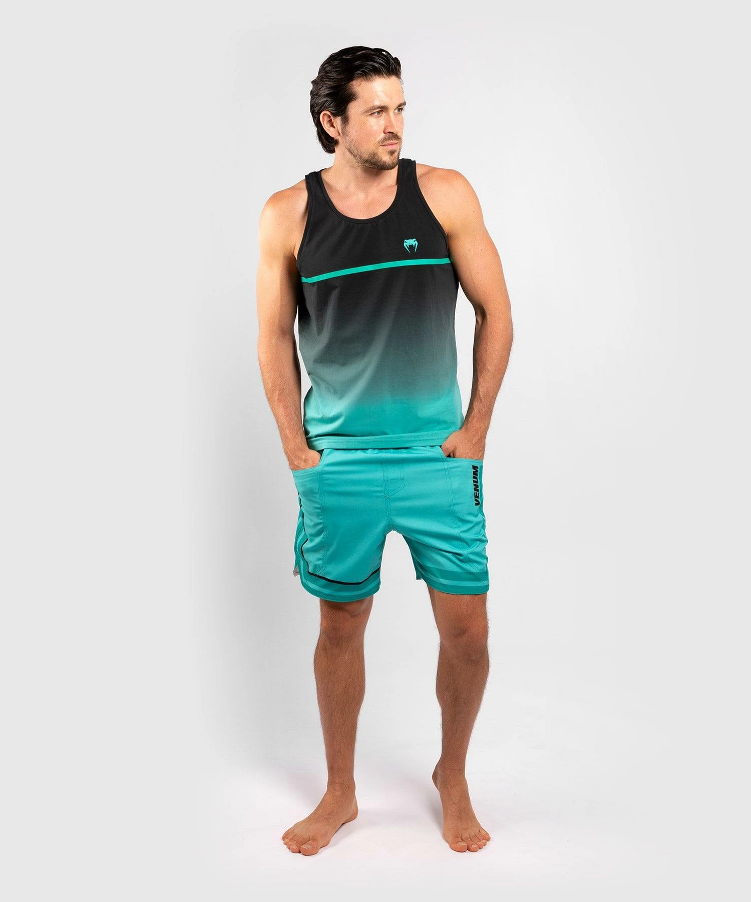 A shortcut and trendy design: these swim shorts flourish when paired with the tank top from the same range.