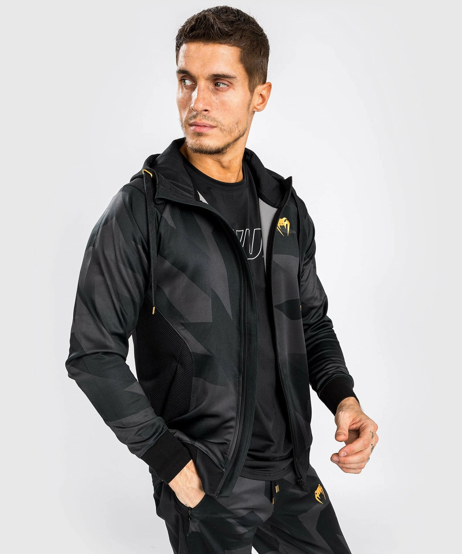 Made in a soft and stretchy fabric, this zip-up hooded jacket is designed to give you freedom of movement.